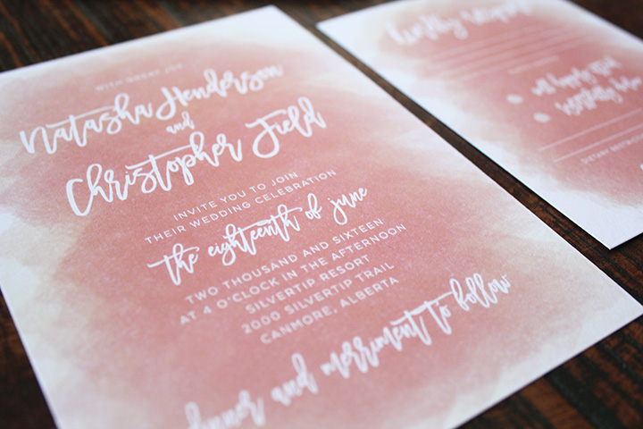 This wedding invitation has me swooning. Printed on a soft cotton cardstock, the peach brush strokes create a softness that is totally swoon worthy.